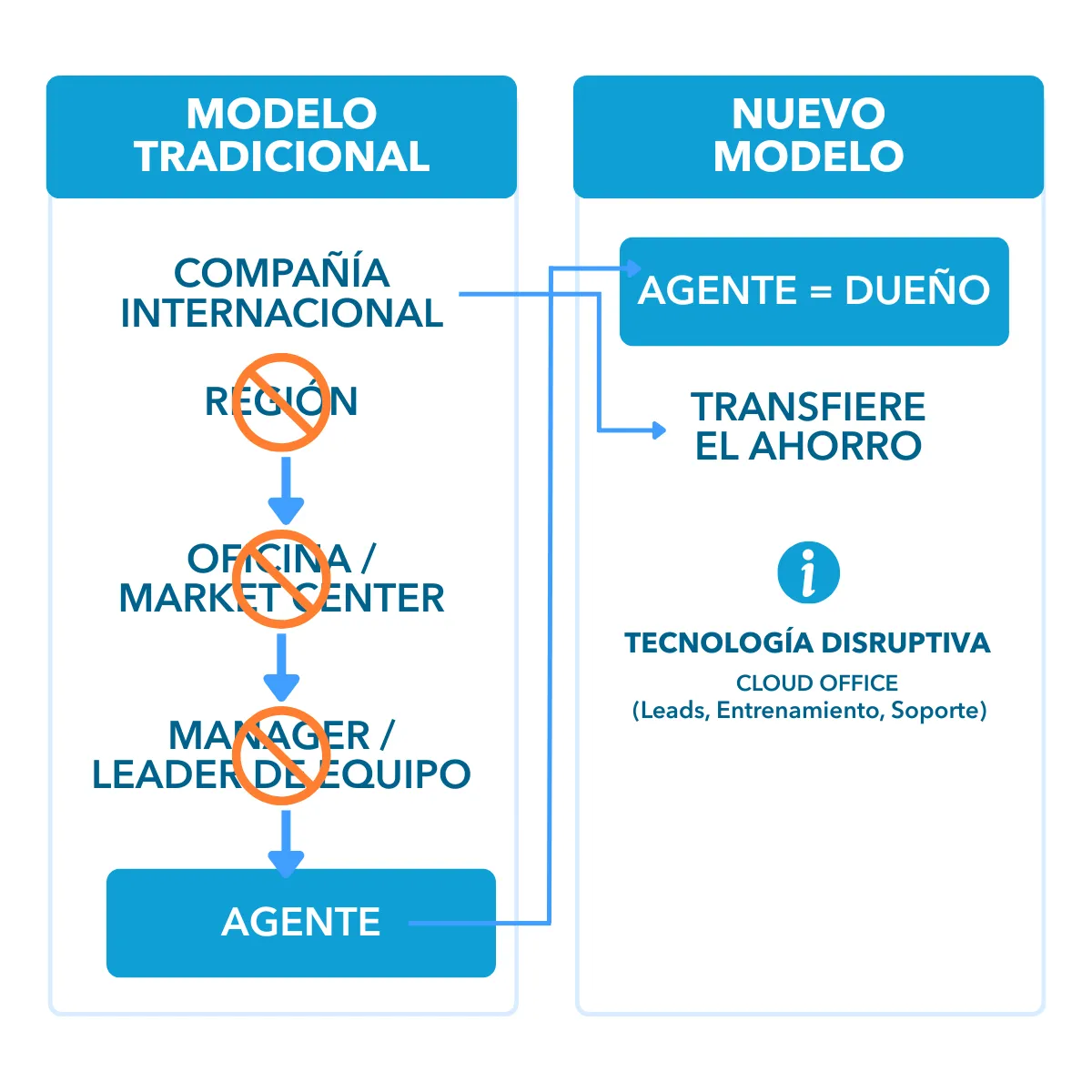 El modelo de agencias inmobiliarias tradicional está roto: se pagan pocas comisiones, los asesores experimentados no quieren compartir sus conocimientos, los asesores no construyen un patrimonio para retirarse con dinero y el ambiente de trabajo es tóxico.
